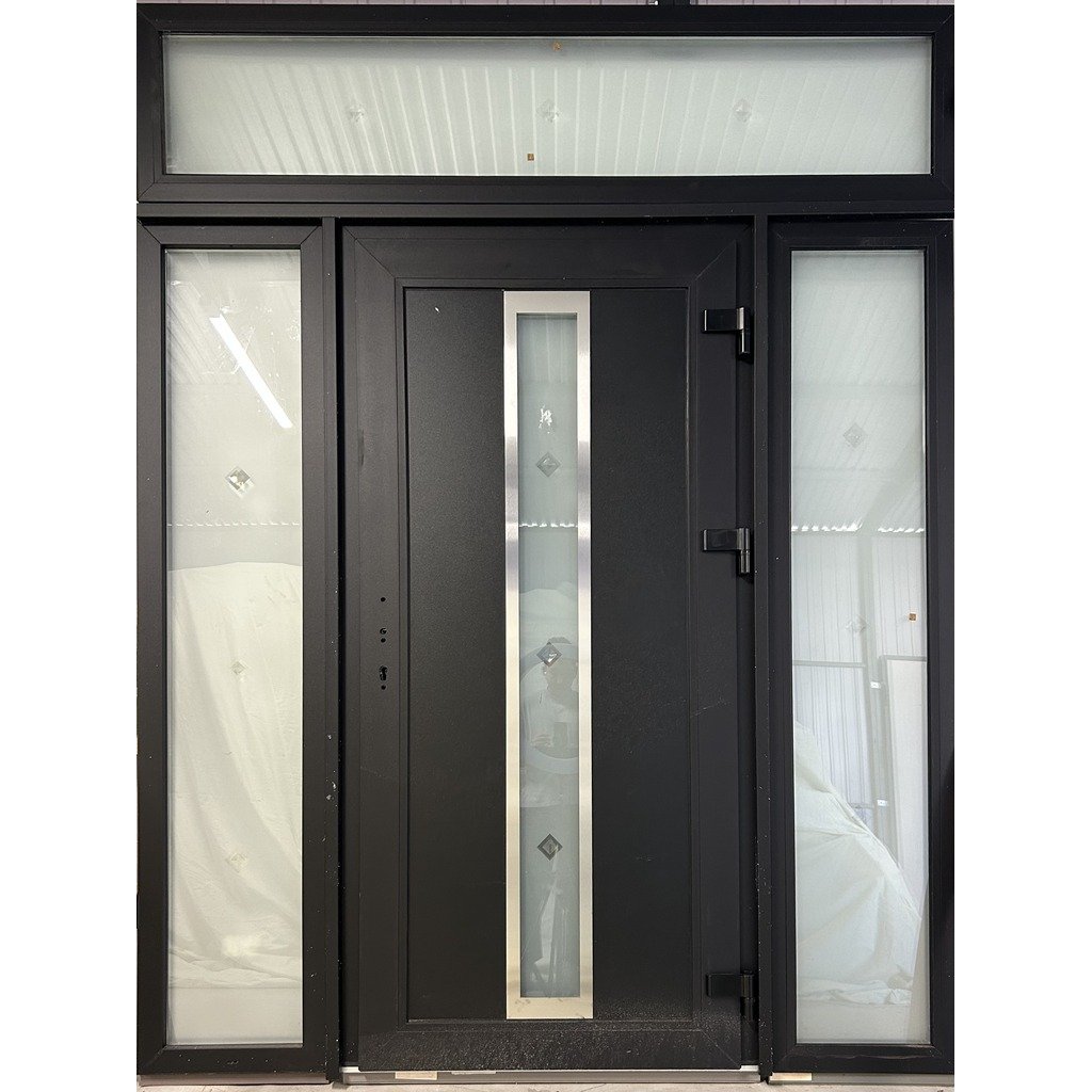 Vchodové plastové černé dveře WDS AD 76 STANDART, 194x250cm, pravé